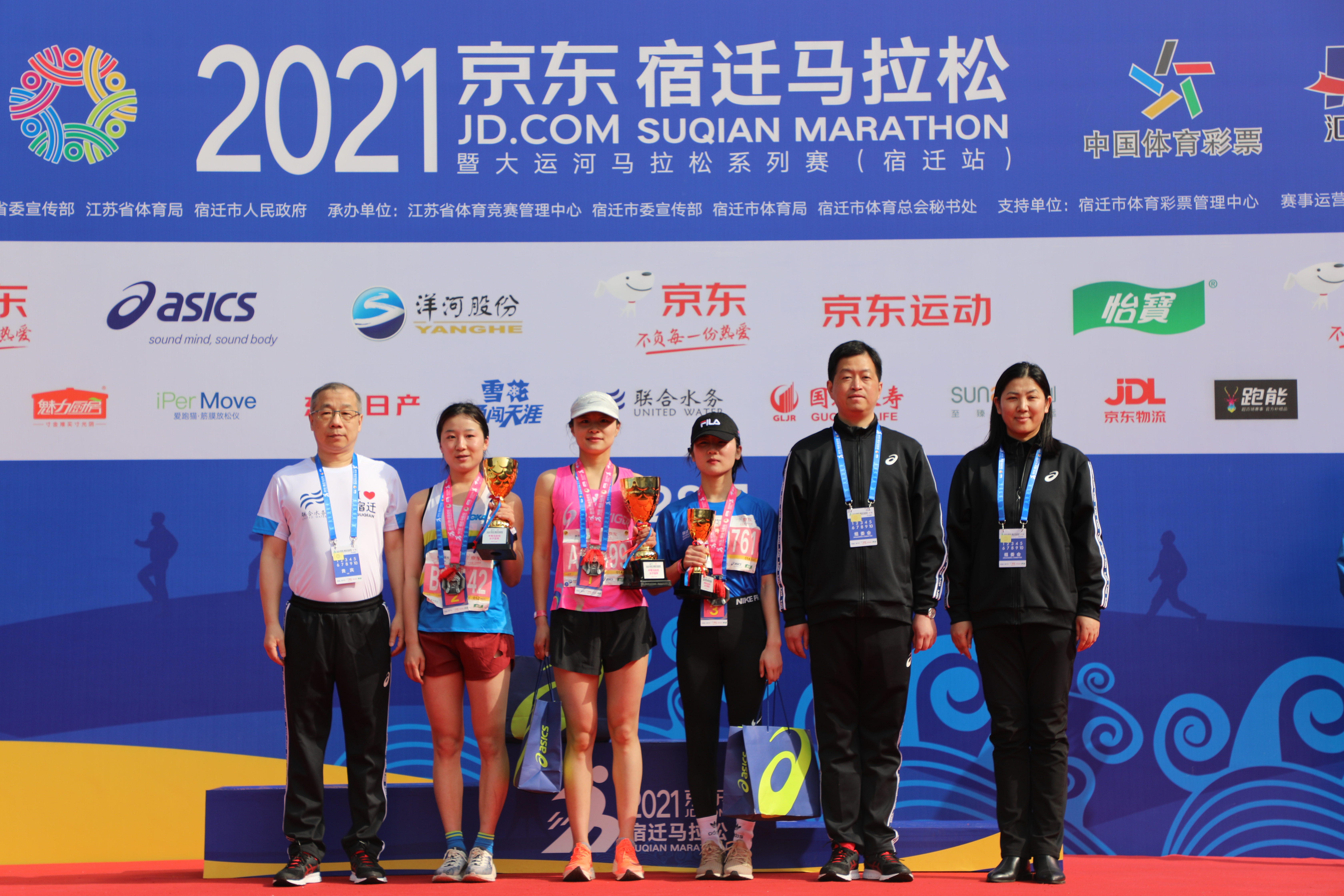 “聯(lián)合水務供優(yōu)質之水,保障人民健康!”“聯(lián)合水務為宿遷的綠水青山努力奮斗!”緊隨大旗身后,聯(lián)合水務全馬跑團由集團高級副總裁陳樵、人力資源部總經(jīng)理楊麗霞率隊;聯(lián)合水務集團總裁辦主任豐洪斌則帶領17人的半馬跑團,挑戰(zhàn)賽道,戰(zhàn)勝自我。 “你在賽場揮灑汗水,我在場外擂鼓吶喊。”4支拉拉隊號角不斷,旗幟飄揚,吶喊聲、助威聲響徹云霄,激勵著萬名跑者、聯(lián)合水務能量跑團奮勇前行。服務隊人員身著聯(lián)合水務服務隊服裝,忙忙碌碌,穿梭于人群與各個服務點,做好各項服務保障工作。 在半馬結束后記者采訪了來自湖北的唐紅燕,她也是聯(lián)合水務的一名員工。“我是第一次來宿遷,沒想到這里這么漂亮!市民也非常熱情,一路上都在為我們加油助力!”雖說參加過多次馬拉松,但她還是被宿遷的風土人情吸引住了。她坦承,來宿遷參賽來對了! 在半馬終點——宿遷市奧體中心,俞偉景受邀為半馬女子項目獲獎者頒獎,對她們巾幗英雄的風采給予了高度贊揚。